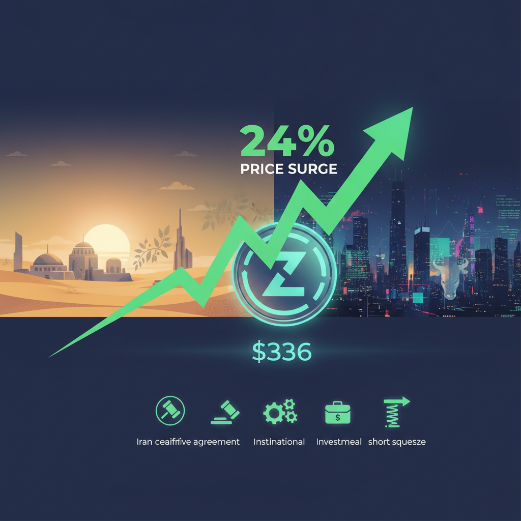 Gần đây, Zcash (ZEC) đã có một cú bật mạnh mẽ vượt qua các ngưỡng kháng cự quan trọng, với mức tăng khoảng 24% trong vòng 24 giờ, đạt mức giá $336. Thỏa thuận ngừng bắn giữa Mỹ và Iran đã tác động tích cực đến toàn bộ thị trường tiền điện tử, tạo ra tâm lý lạc quan trong thị trường. Khối lượng vốn từ các tổ chức đang đổ vào nhanh chóng, thúc đẩy ZEC hình thành động lực tăng giá mạnh mẽ.